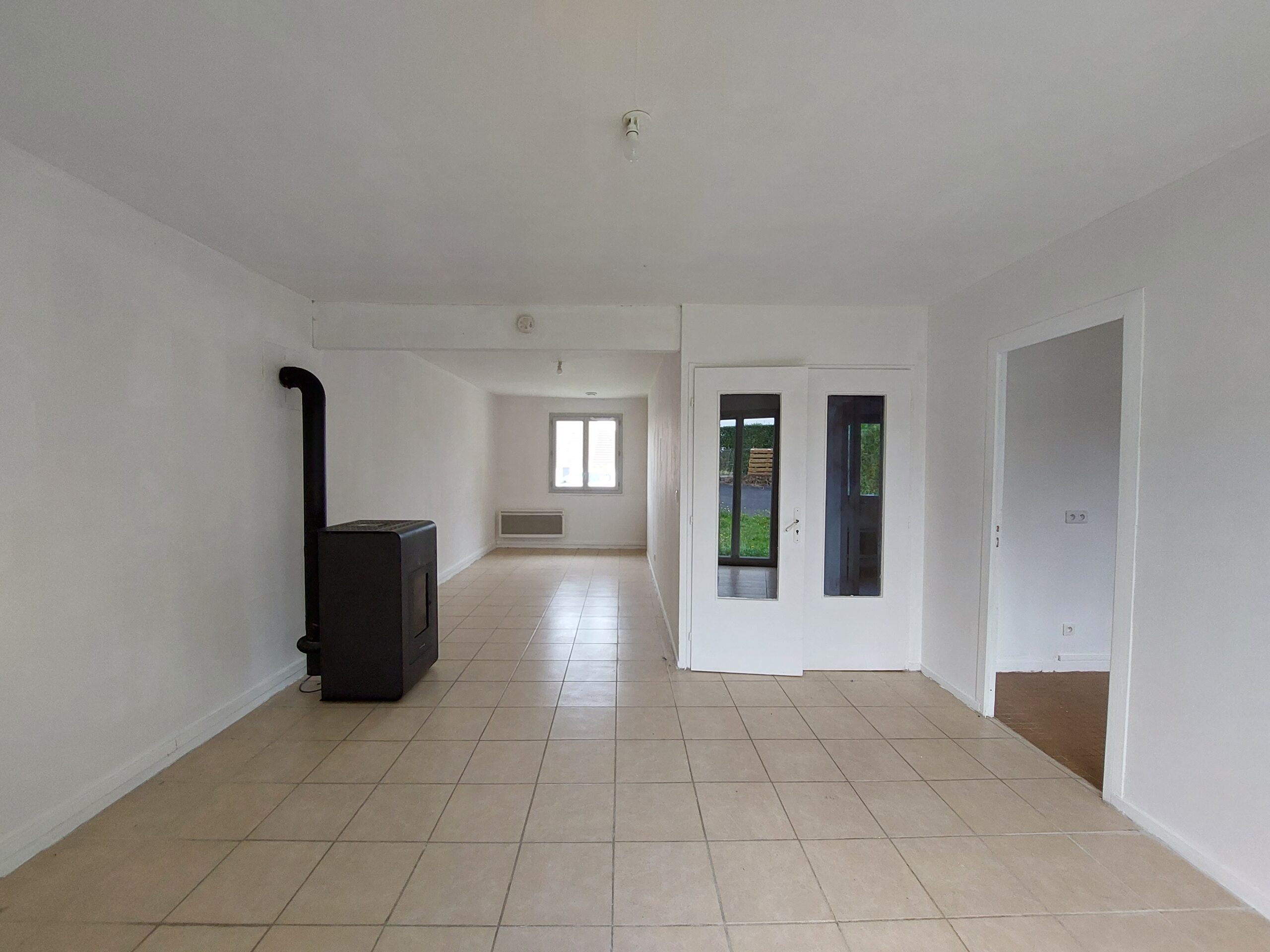 ✅ Un séjour – salon spacieux, avec poêle à granulés, lumineux ouvrant sur un jardin privatif